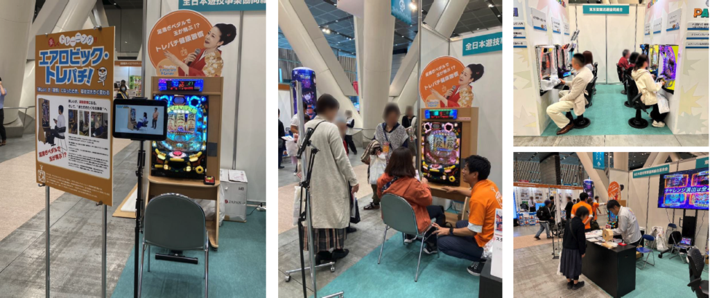 今回初出展となった「エアロビック・トレパチ」は、多くのお客様にご体験いただき、遊技業界における社会貢献活動を効果的にアピールすることができました。